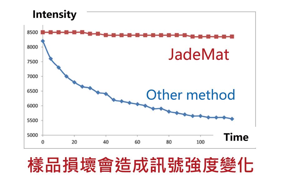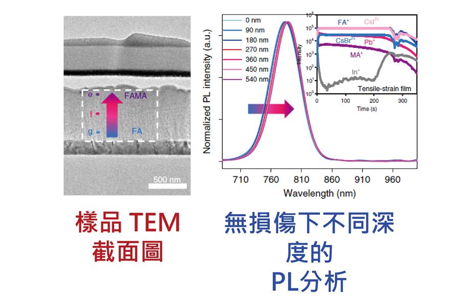 具有良好光電性質的有機-無機複合型鹵素鈣鈦礦材料,是一種很容易被雷射損壞的材料。多次/過久的量測會產生能量累積,因而造成樣品損壞,使得欲分析訊號變微弱或呈現出不確定性。此外常見的光譜技術,也難以在不破壞樣品的條件下,得知表面層以下不同深度的光譜影像和相關資訊。這兩個問題點,剛好是無損傷光譜擷取技術最大的優勢所在。