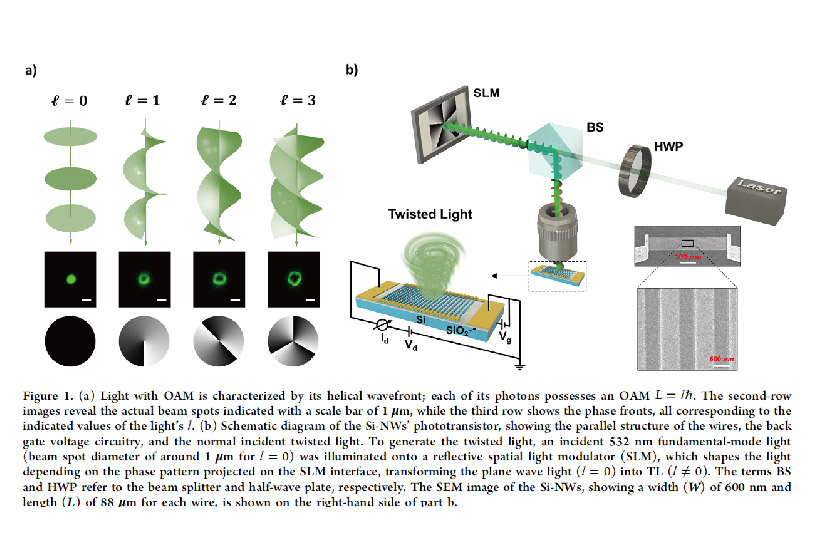 师大蓝老师又一篇精彩发表! 利用数字光学JadeMat平台,透过数字化软件定义涡旋光,使得奈米硅管晶体管得..